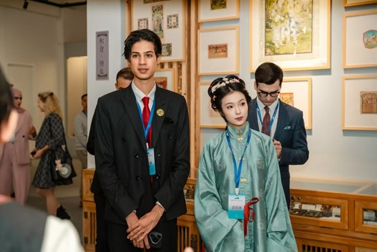 论坛间隙,身着青色宋式服装的00后国风博主陈喜悦,被中外青年拉着合影、合拍视频。在陈喜悦与浙江广电合作的创意视频《丹青游》里,身着中国传统服装的她,带着百宝货箱穿梭于世界名画之中,为《戴珍珠耳环的少女》戴上芍药花,请《思想者》体验中式躺椅,给《倒牛奶的女仆》送上中国花馍,还邀请“梵高”品尝了中国糖画。