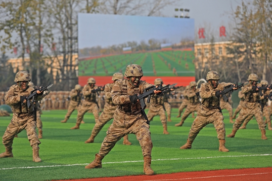 近日,北部战区海军某训练基地隆重举行2024年秋季新兵入伍教育训练汇报展示暨授衔仪式,千余名新兵家长共同见证子女的军旅“成人礼”。图为新兵进行结业课目展示。王远方/摄