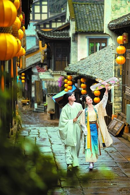 12月6日,大雪,重庆永川松溉古镇,散落在街边的老木屋、老茶馆里,着一袭华裳汉服的“潮人”开始聚集。白墙墨顶,小巷幽深,时尚靓丽的年轻男女,与浩浩汤汤的江水一起,共赴这长江边的古韵“穿越”。