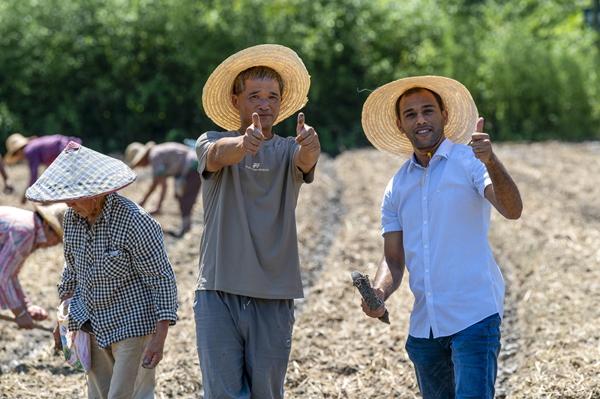 8月22日,浙江省金华市婺城区莘畈乡农田里,穆罕默德在当地农民指导下,学习秋季作物播种技术。 来自埃及的穆罕默德是浙江大学农业与生物技术学院的博士,一周前刚刚入职金华市农业科学研究院。连日来,穆罕默德和同事深入农村,下农田体验农事操作,熟悉农业生产技术。视觉中国供图