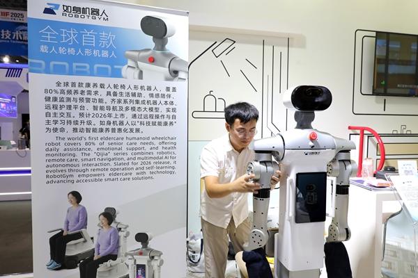 9月24日,上海,第二十五届中国国际工业博览会举行。图为载人轮椅人形机器人。视觉中国供图