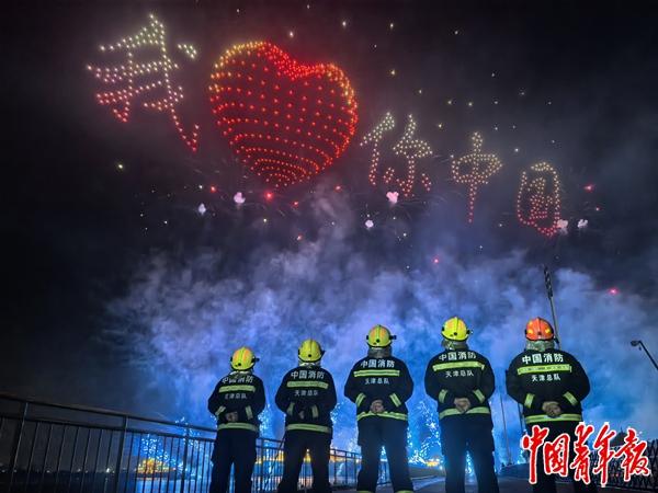 国庆中秋假期,天津泰达航母主题公园的“焰火+无人机”表演吸引数万游客前来打卡。天津滨海新区消防救援支队“海岸线上的火焰蓝”志愿服务队启动“定点驻守+动态巡逻”双重保障模式,昼夜守护在景区,从陆地到水域织密“安全网”。中青报·中青网记者 胡春艳/摄