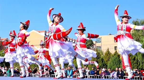 10月12日,甘肃省张掖市临泽县文化体育广场上,参加2025年全国妇女广场舞大赛(甘肃站)选拔赛暨甘肃省优秀广场舞队伍交流展示大赛参赛代表队的队员们在表演舞蹈。当日,来自甘肃各地的14支优秀广场舞队、200多名参赛选手,齐聚一堂、以“舞”会友。视觉中国供图