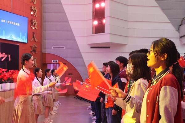 10月14日,香港金文泰中学师生与重庆市育才中学校师生合唱《我和我的祖国》。当日,2025-2026学年香港高中公民与社会发展科(简称“公民科”)内地考察在重庆市育才中学校举行启动仪式。公民科内地考察是香港高中课程的重要组成部分,自2023年4月起,香港高中公民科学生内地考察团陆续成行。新华社记者 雷明宇/摄