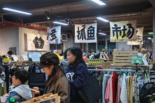 10月18日,河南郑州,消费者在多抓鱼循环商店挑选二手服饰。视觉中国供图