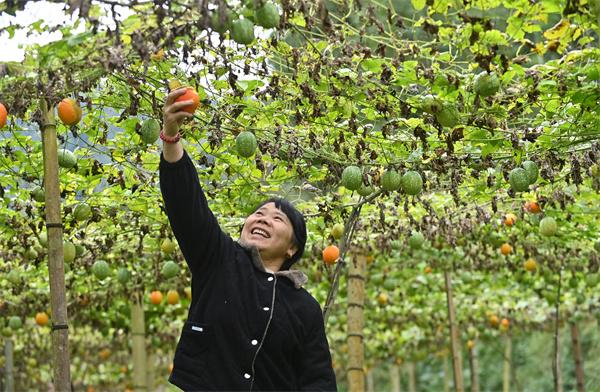 10月21日,在广西龙胜各族自治县三门镇大地村,村民在采摘吊瓜。