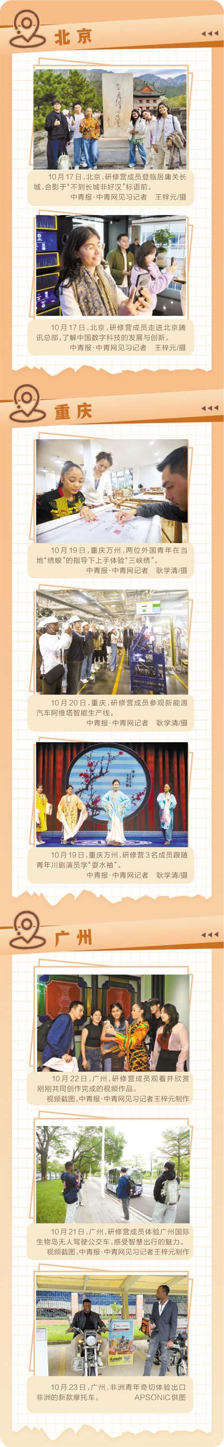 10月16日至23日,来自加纳、肯尼亚、印度、泰国、马来西亚、印度尼西亚等国的青年博主、传媒行业代表,参加了新媒体青年研修营。本次研修营以“青年携手推进现代化”为主题,青年们先后走访了北京、重庆和广州三座城市。