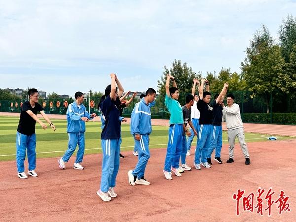 教学实践中,王骏达发现“喜欢运动的高中生,思维更加敏捷活跃”。面对以往高三学生课间趴桌睡觉、氛围沉闷的情况,他积极动员学生课间走出教室锻炼。看到一些女生运动积极性不高,他组织丢沙包等游戏,用互动方式点燃学生的运动热情。