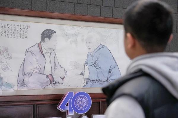 画作前,新摆放的南开大学陈省身数学研究所(以下简称“南开数学所”)四十周年蓝色标识,正是二人奇妙缘分的一个印证:杨振宁的父亲杨武之是陈省身的老师,杨振宁在西南联大时又受教于陈省身,等到陈省身创建南开数学所后,特邀杨振宁来共同筹建南开理论物理研究室。两人命运的交汇,影响了两个学科在中国的发展。