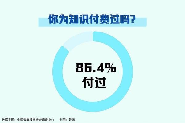 在视频网站买一套音乐课,去播客软件听一节故事写作训练……如今,为知识付费越来越受到年轻人的认可。近日,中国青年报社社会调查中心联合问卷网(wenjuan.com),对1334名青年进行的一项调查显示,86.4%的受访青年有过知识付费的经历。其中,音视频课程是受访青年购买最多的知识付费产品。