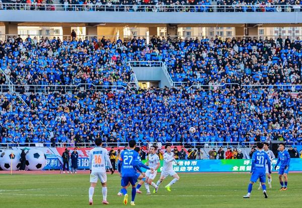 内蒙古自治区通辽市,“蒙超”通辽主场赛是这座仅有277万人口的小城办过的最大的一场体育赛事活动。决赛那天,体育场来了4万多名观众,过道都挤满了。