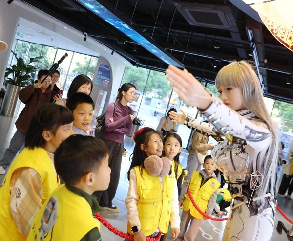 11月13日,杭州文三未来科技体验中心迎来各地青少年分批参观。作为新兴研学基地,文三未来科技体验中心以杭州六小龙为主体,整合多项尖端科技成果,打造集科普、体验、互动于一体的未来科技“梦工厂”,持续吸引大批青少年前来探索打卡。视觉中国供图