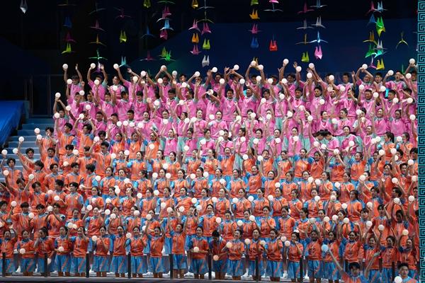 参赛代表团代表入场,随之展开的是一张亮眼的成绩单。在田径、游泳、射击、举重、场地自行车等有纪录的项目中,本届参赛的残奥聋奥运动员取得超15项世界纪录、创156项全国纪录的亮眼成绩。