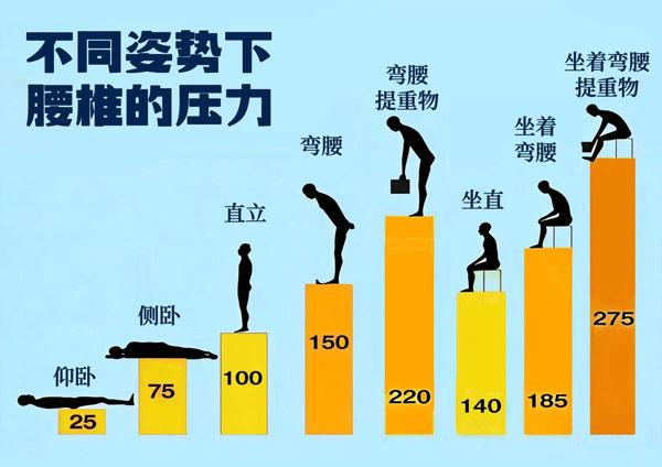 座椅的椅背最好软硬适中,这样坐着的时候能够身体微微后仰。腰椎间盘内的压力随着坐位角度的不同而变化,当坐位角度在95度-105度之间,且局部有支撑时,腰椎间盘内压力最小,人体也最舒服。
