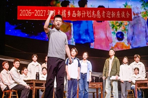 12月26日,西部计划主题的原创舞台剧《向西》在成都大学首演。该剧以西部计划志愿者在四川服务的真实故事为蓝本,讲述了他们从怀揣憧憬到深耕乡土、从践行使命到领悟初心的动人历程。该剧由共青团四川省委指导,四川省青年志愿者服务中心、四川青年志愿者协会和成都大学联合出品。尚建业/摄