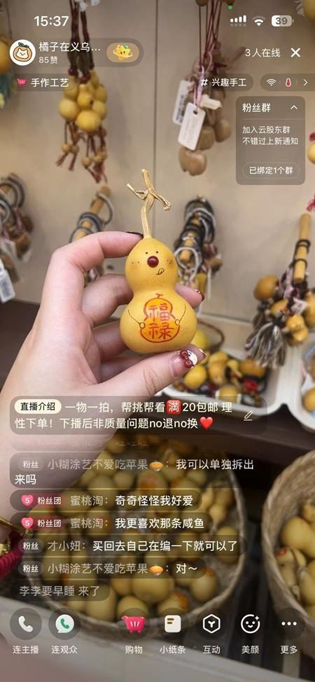 “这个是最近新上的款,给宝宝们看一下,如果有其他想看的款,宝宝们也可以‘点菜’。”直播中,葛欣宇把镜头对准了店铺里琳琅满目的商品:发卡、餐具、挂件……她穿行在货架间,一边介绍,一边为手机那头的观众寻找合适的商品。