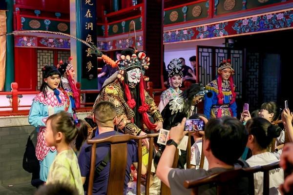 北京湖广会馆与国家京剧院、北京京剧院、风雷京剧团等专业院团合作,持续上演京剧名家名段并创排新剧目,还打造了沉浸式演出剧目《湖光洄梦》《金风玉露》,观众可跟随演员在古戏楼、后台、窗棂、庭院等场景游移观赏,体悟湖广会馆的历史文脉及其独有的戏曲风韵,颇受年轻观众欢迎。