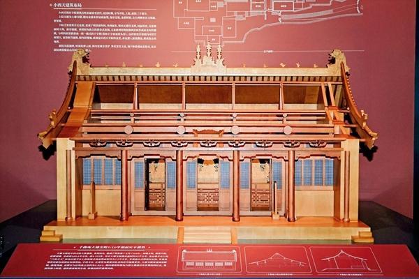 在“数字档案”的基础上,本次展览的“隰州胜刹”篇章,通过大雄宝殿悬塑全景动态灯箱装置、大雄宝殿建筑复原模型等辅助装置,展现小西天建筑结构之精妙与悬塑艺术之精绝;在“西天圣境”篇章,有1∶1高保真3D打印复原核心佛龛,有触摸屏可以让观众完成对悬塑的拆解学习,还搭配独特的光影展出了掉落的悬塑部件。