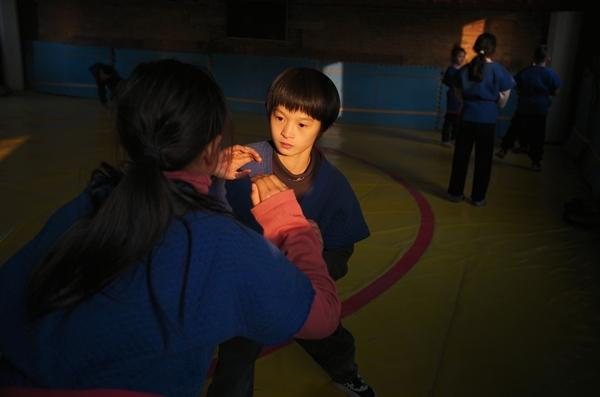 上午的体能训练结束后,孩子们排队领取热牛奶,11岁的冯韵雅拿到后没有第一时间打开,而是把牛奶袋捂在冻得通红的脸和手上,待皮肤回暖,才小口喝下。短暂的休整后,她和朋友们又转身投入未完成的训练中。来自保定清苑阳城村的她已经在这里练习两年多了,看着比自己年纪大一些的孩子拿到的荣誉,她梦想着,自己有一天也可以考上体育大学,靠摔跤走出去。