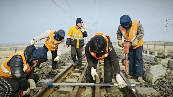 近日,这群00后青年职工主动放弃与家人团聚的机会,以“时时放心不下”的责任感,奋战在线路整修一线。他们手持道尺、螺栓扳手等工具,在冰冷的铁轨间弯腰、蹲起,仔细检查每一处钢轨接头、扣件螺栓,对线路几何尺寸、轨道平顺度进行精准测量,不放过任何一处病害隐患。