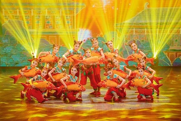 2月2日,浙江省衢州市柯城区文化馆,“春天你好,‘艺’起成长”美育成果展演,以充满童真创意的方式演绎立春文化。图为舞蹈《年画娃娃乐淘淘》。鲁艺文/摄