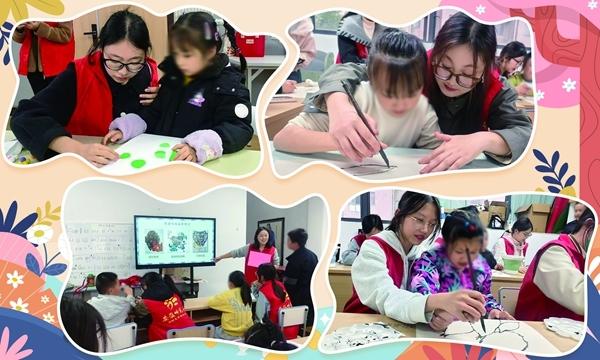 让王瑞云印象深刻的是一次扎染活动,一个平时几乎不开口的男孩,在布料浸入染缸的瞬间笑了起来,还举着染出缤纷纹样的布条跑向妈妈。“他妈妈当场就哭了,说那是孩子半年来第一次主动表达开心。”王瑞云回忆,这些温暖片段,让志愿者真切感受到艺术的疗愈温度。
