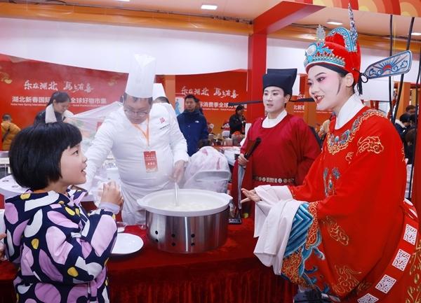 2月5日,在“湖北新春国际消费季”活动现场,黄梅戏演员与小朋友互动。当日,“湖北新春国际消费季”活动在武汉启动。活动以“政策+活动+新场景+服务”四轮驱动,推动消费体验升级,为消费者打造多元化新春消费场景,持续释放消费潜力。赵军/摄(新华社发)