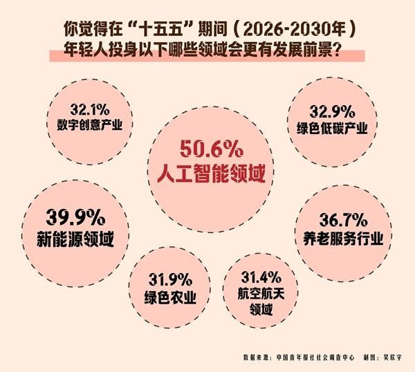 “十五五”期间,超半数受访者看好年轻人投身人工智能领域