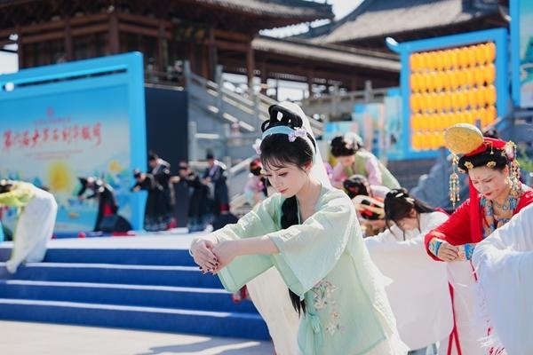 当天,在世界文化遗产大足石刻前,身着各式华服的青年展示华服之美、国潮之盛,并参加“天下大足·青春礼承”华服祈福典。