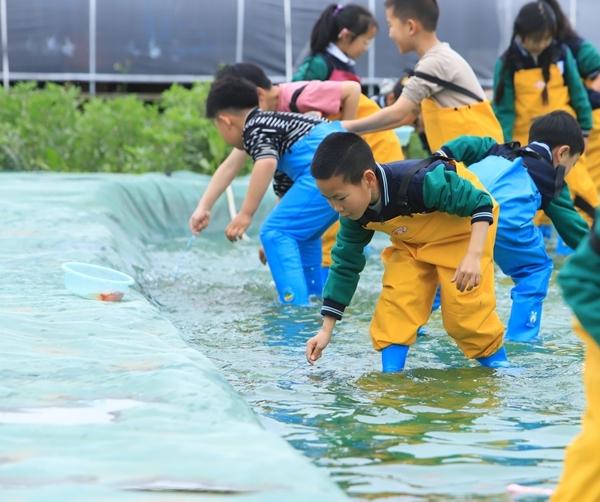4月8日,浙江省台州市路桥区路北街道中心小学的小朋友来到金清镇高升村的“高升奇妙游”基地研学,在乡村长知识,感受乡村乐趣和魅力。视觉中国供图