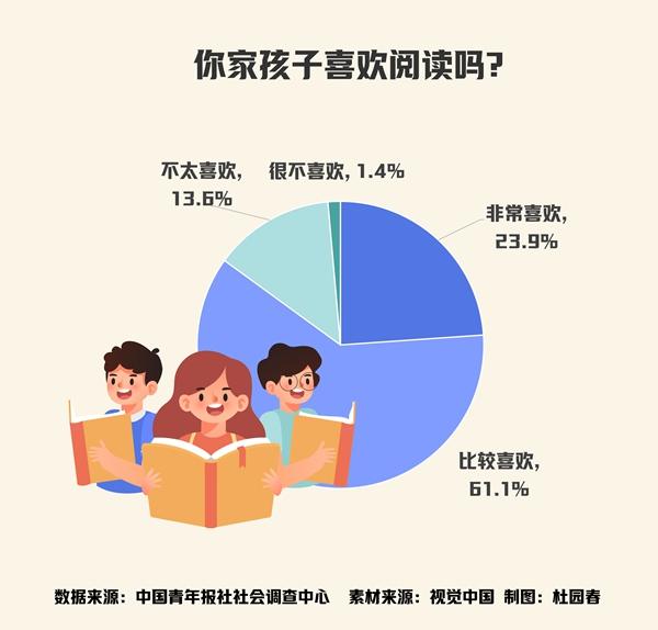 调查显示,85.0%的受访家长表示孩子喜欢阅读,超两成(23.9%)受访家长表示孩子“非常喜欢阅读”。